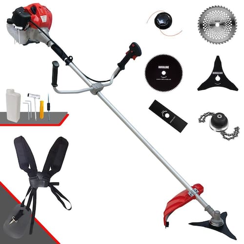 Roçadeira Lateral ANMAX CG430P À Gasolina 2 Tempos 43cc 2HP + Faca 3 Pontas 255m + Faca 40 Dentes 255mm + Faca 80 Dentes 255mm + Trimmer