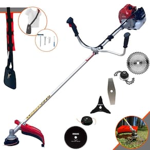 Com guidão ergonômico lateral, permite um alcance amplo e maior mobilidade, capaz de aumentar a produtividade diária. Possui motor 2 tempos á gasolina, de 43 Cilindradas; 1,7HP de potência que proporcionam maior performance e economia na operação. Seu conjunto de acessórios inclui kit de ferramentas, cinto de suporte almofadado, carretel de nylon e lâmina de corte 3 pontas.