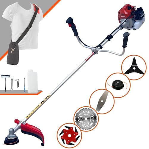 Com guidão ergonômico lateral, permite um alcance amplo e maior mobilidade, capaz de aumentar a produtividade diária. Possui motor 2 tempos á gasolina, de 43 Cilindradas; 1,7HP de potência que proporcionam maior performance e economia na operação. Seu conjunto de acessórios inclui kit de ferramentas, cinto de suporte almofadado, carretel de nylon e lâmina de corte 3 pontas.