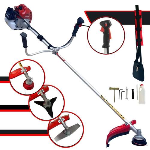 Com guidão ergonômico lateral, permite um alcance amplo e maior mobilidade, capaz de aumentar a produtividade diária. Possui motor 2 tempos á gasolina, de 62 Cilindradas; 3HP de potência que proporcionam maior performance e economia na operação. Seu conjunto de acessórios inclui kit de ferramentas, cinto de suporte almofadado, carretel de nylon e lâmina de corte 3 pontas.