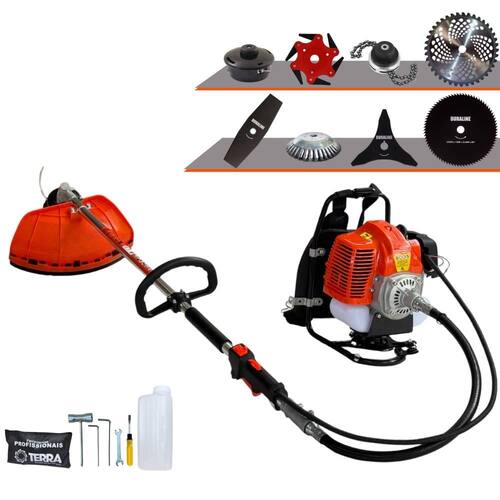 Roçadeira Costal Terra GRC430 À Gasolina 43cc 1,7HP 2T Com Faca 40 Dentes e Carretel + Kit de Facas (2P, 3P, 80D, 6PT, Escova e Trimmer)