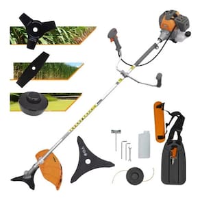 Com guidão ergonômico lateral, permite um alcance amplo e maior mobilidade, capaz de aumentar a produtividade diária. Possui motor 2 tempos á gasolina, de 51,6 Cilindradas (52cc) 10.000 de rotação 2,0 HP de potência que proporcionam maior performance e economia na operação. Seu conjunto de acessórios inclui kit de ferramentas, cinto de sustentação, carretel de nylon e lâmina de corte 3 pontas.
