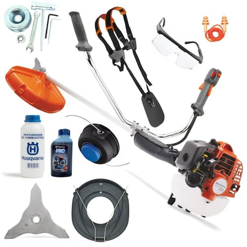 Peso (sem equipamento de corte) 5.1 kg Equipamento Lâmina Multi 255-3 Cinturão Cinturão duplo padrão Cabeçote com fio de náilon T35 M10 Lubrificante