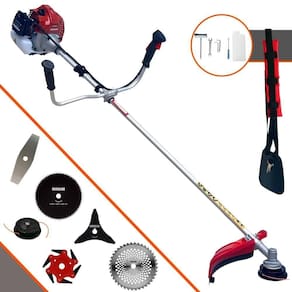 Com guidão ergonômico lateral, permite um alcance amplo e maior mobilidade, capaz de aumentar a produtividade diária. Possui motor 2 tempos á gasolina, de 43 Cilindradas; 1,7HP de potência que proporcionam maior performance e economia na operação. Seu conjunto de acessórios inclui kit de ferramentas, cinto de suporte almofadado, carretel de nylon e lâmina de corte 3 pontas.