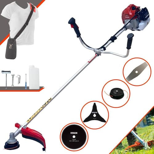 Com guidão ergonômico lateral, permite um alcance amplo e maior mobilidade, capaz de aumentar a produtividade diária. Possui motor 2 tempos á gasolina, de 52 Cilindradas; 2,5HP de potência que proporcionam maior performance e economia na operação. Seu conjunto de acessórios inclui kit de ferramentas, cinto de suporte almofadado, carretel de nylon e lâmina de corte 3 pontas.