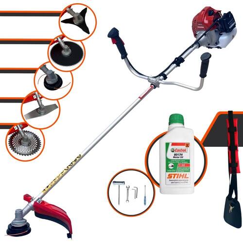 Com guidão ergonômico lateral, permite um alcance amplo e maior mobilidade, capaz de aumentar a produtividade diária. Possui motor 2 tempos á gasolina, de 52 Cilindradas; 2,5HP de potência que proporcionam maior performance e economia na operação. Seu conjunto de acessórios inclui kit de ferramentas, cinto de suporte almofadado, carretel de nylon e lâmina de corte 3 pontas.
