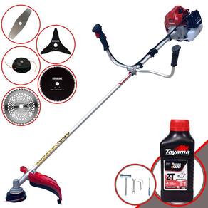 Roçadeira À Gasolina Kawashima BCJ 521L 52CC 2,5HP 2T + Faca 3 Pontas Duraline 255mm + Faca 40 Dentes Duraline 255mm + Faca 80 Dentes Duraline 255mm + Óleo Toyama FG50 500ml