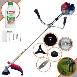 Com guidão ergonômico lateral, permite um alcance amplo e maior mobilidade, capaz de aumentar a produtividade diária. Possui motor 2 tempos á gasolina, de 52 Cilindradas; 2,5HP de potência que proporcionam maior performance e economia na operação. Seu conjunto de acessórios inclui kit de ferramentas, cinto de suporte almofadado, carretel de nylon e lâmina de corte 3 pontas.