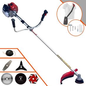 Com guidão ergonômico lateral, permite um alcance amplo e maior mobilidade, capaz de aumentar a produtividade diária. Possui motor 2 tempos á gasolina, de 52 Cilindradas; 2,5HP de potência que proporcionam maior performance e economia na operação. Seu conjunto de acessórios inclui kit de ferramentas, cinto de suporte almofadado, carretel de nylon e lâmina de corte 3 pontas.