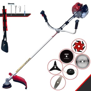 Com guidão ergonômico lateral, permite um alcance amplo e maior mobilidade, capaz de aumentar a produtividade diária. Possui motor 2 tempos á gasolina, de 52 Cilindradas; 2,5HP de potência que proporcionam maior performance e economia na operação. Seu conjunto de acessórios inclui kit de ferramentas, cinto de suporte almofadado, carretel de nylon e lâmina de corte 3 pontas.