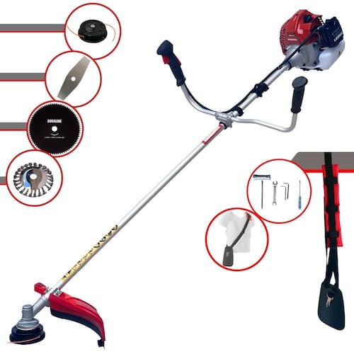 Com guidão ergonômico lateral, permite um alcance amplo e maior mobilidade, capaz de aumentar a produtividade diária. Possui motor 2 tempos á gasolina, de 52 Cilindradas; 2,5HP de potência que proporcionam maior performance e economia na operação. Seu conjunto de acessórios inclui kit de ferramentas, cinto de suporte almofadado, carretel de nylon e lâmina de corte 3 pontas.