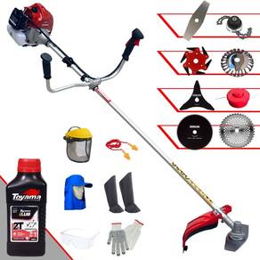 Roçadeira À Gasolina Kawashima BCJ 620L 62CC 3HP 2T + Faca 3 Pontas Duraline + Faca 40 Dentes Duraline + Faca 80 Dentes Duraline + Faca 6 Pontas + Escova Rotativa 24 cerdas + Trimmer + Óleo Toyama FG50 500ml + Kit EPI Completo