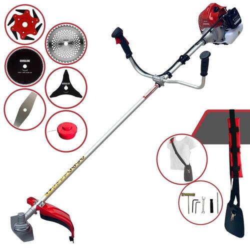 Com guidão ergonômico lateral, permite um alcance amplo e maior mobilidade, capaz de aumentar a produtividade diária. Possui motor 2 tempos á gasolina, de 62 Cilindradas; 3HP de potência que proporcionam maior performance e economia na operação. Seu conjunto de acessórios inclui kit de ferramentas, cinto de suporte almofadado, carretel de nylon e lâmina de corte 3 pontas.