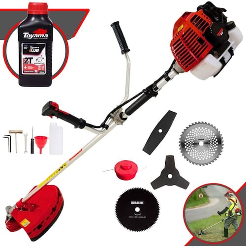 Roçadeira Lateral Kawashima KW43-L À Gasolina 2T 43cc 1,7HP Com Lâmina 3 Pontas + Faca 2 Pontas 330mm + Faca 40 Dentes 255mm + Faca 80 Dentes 255mm + Óleo Toyama LUB FG50 500ml 2T