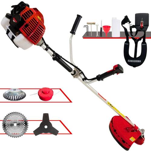 A Roçadeira Kawashima KW52L conta com motor 2 tempos à gasolina, 52 cilindradas e potência de 2,5HP. Projetada para facilitar o trabalho de roçada de capim, arbustos, pastagens, controle de pastos, trabalhos de jardinagem, limpeza e manutenção de grandes áreas verdes com sua utilização em sítios; fazendas e chácaras. Ideal também para manutenção e limpeza de vias públicas e rodovias. Desenvolvida com uma estrutura resistente e suporte do guidão reforçado, seus componentes possuem alta durabilidade. A vantagem da roçadeira é que pode ser usada em locais irregulares, morros, buracos, florestas, entre outro com dificuldade de acesso. Produto de alta qualidade, desempenho e durabilidade.