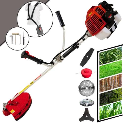 Roçadeira Lateral Kawashima KW52-L À Gasolina 2T 52c 2,5HP Com Lâmina 3 Pontas + Faca 2 Pontas 330mm 2,7mm + Faca 40 Dentes 255mm 2mm + Escova Rotativa 38 Cerdas 200mm