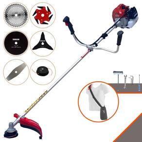 Com guidão ergonômico lateral, permite um alcance amplo e maior mobilidade, capaz de aumentar a produtividade diária. Possui motor 2 tempos á gasolina, de 52 Cilindradas; 2,5HP de potência que proporcionam maior performance e economia na operação. Seu conjunto de acessórios inclui kit de ferramentas, cinto de suporte almofadado, carretel de nylon e lâmina de corte 3 pontas.