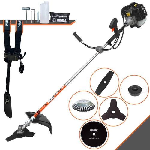 Roçadeira Lateral Terra GRH-430 Black À Gasolina 2 Tempos 43cc 1,7HP + Faca 2 Pontas 330mm 2,7mm + Faca 80 Dentes 255mm 1,5mm + Escova Rotativa 200mm 38 Cerdas