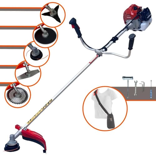 Com guidão ergonômico lateral, permite um alcance amplo e maior mobilidade, capaz de aumentar a produtividade diária. Possui motor 2 tempos á gasolina, de 43 Cilindradas; 1,7HP de potência que proporcionam maior performance e economia na operação. Seu conjunto de acessórios inclui kit de ferramentas, cinto de suporte almofadado, carretel de nylon e lâmina de corte 3 pontas.