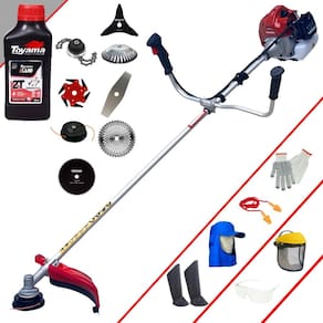 Roçadeira À Gasolina Kawashima BCJ 431L 42,7CC 1,7HP 2T + Faca 3 Pontas + Faca 6 Pontas + Faca 40 Dentes + Faca 80 Dentes + Trimmer + Escova 38 Cerdas + Óleo Toyama FG50 500ml + Kit EPI Completo