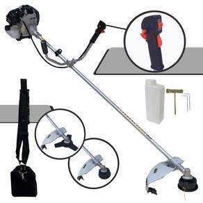 Com guidão ergonômico lateral, permite um alcance amplo e maior mobilidade, capaz de aumentar a produtividade diária. Possui motor 2 tempos á gasolina, de 42,7 Cilindradas, 12.000 de rotação 1,7HP de potência que proporcionam maior performance e economia na operação. Seu conjunto de acessórios inclui kit de ferramentas, cinto de suporte almofadado, carretel de nylon e lâmina de corte 3 pontas.
