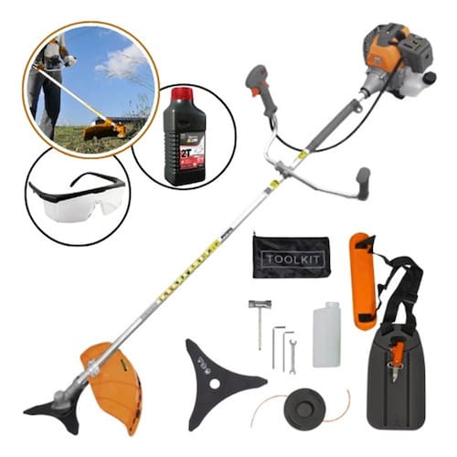Com guidão ergonômico lateral, permite um alcance amplo e maior mobilidade, capaz de aumentar a produtividade diária. Possui motor 2 tempos á gasolina, de 51,6 Cilindradas (52cc) 10.000 de rotação 2,0 HP de potência que proporcionam maior performance e economia na operação. Seu conjunto de acessórios inclui kit de ferramentas, cinto de sustentação, carretel de nylon e lâmina de corte 3 pontas.