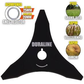 A LÂMINA (FACÃO) 2 Pontas acompanha um anel de redução que pode ser utiizada para roçadeiras de furo 20mm ou 25mm, sendo feita em aço cromo vanádio que garante mais , desempenho e durabilidade. É uma lâmina balanceada, fazendo com que haja menor vibração, corte contínuo e suave, com mais conforto ao operador e mais longevidade para a roçadeira. Possui maior rendimento no trabalho e não precisa ser afiada antes do . É uma lâmina Multi de 2 pontas que pode ser aplicada para diferentes trabalhos, possui material reforçado que é ideal para trabalhos pesados, podendo cortar os seguintes capins: Capim Grosso, Capim Elefante, Guanxuma, Annoni, Vassourinha, Capim Napier, Capim Sapê e entre outras variantes de capins.