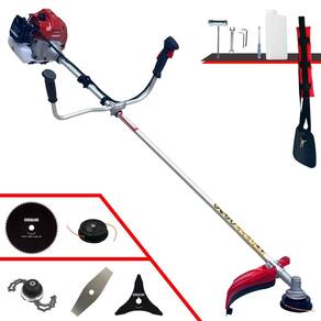 Com guidão ergonômico lateral, permite um alcance amplo e maior mobilidade, capaz de aumentar a produtividade diária. Possui motor 2 tempos á gasolina, de 43 Cilindradas; 1,7HP de potência que proporcionam maior performance e economia na operação. Seu conjunto de acessórios inclui kit de ferramentas, cinto de suporte almofadado, carretel de nylon e lâmina de corte 3 pontas.