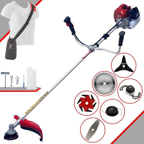 Com guidão ergonômico lateral, permite um alcance amplo e maior mobilidade, capaz de aumentar a produtividade diária. Possui motor 2 tempos á gasolina, de 52 Cilindradas; 2,5HP de potência que proporcionam maior performance e economia na operação. Seu conjunto de acessórios inclui kit de ferramentas, cinto de suporte almofadado, carretel de nylon e lâmina de corte 3 pontas.
