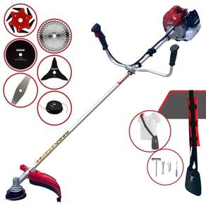 Com guidão ergonômico lateral, permite um alcance amplo e maior mobilidade, capaz de aumentar a produtividade diária. Possui motor 2 tempos á gasolina, de 52 Cilindradas; 2,5HP de potência que proporcionam maior performance e economia na operação. Seu conjunto de acessórios inclui kit de ferramentas, cinto de suporte almofadado, carretel de nylon e lâmina de corte 3 pontas.