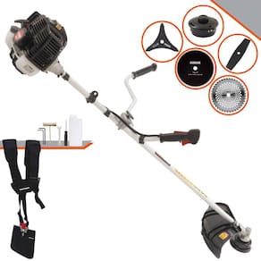 Roçadeira Kawashima KW43-LE À Gasolina 2T 43cc 1,7HP Com Lâmina 3 Pontas + Faca 2 Pontas 330mm 2,7mm + Faca 40 Dentes 255mm 2mm + Faca 80 Dentes 255mm 1,5mm