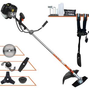 Roçadeira Lateral Terra GRH-520 Black À Gasolina 2 Tempos 52cc 2,5HP + Faca 3 Pontas 255mm 2,9mm + Faca 40 Dentes 255mm 2mm + Trimmer