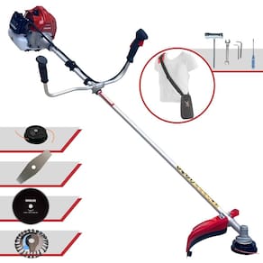 Com guidão ergonômico lateral, permite um alcance amplo e maior mobilidade, capaz de aumentar a produtividade diária. Possui motor 2 tempos á gasolina, de 52 Cilindradas; 2,5HP de potência que proporcionam maior performance e economia na operação. Seu conjunto de acessórios inclui kit de ferramentas, cinto de suporte almofadado, carretel de nylon e lâmina de corte 3 pontas.