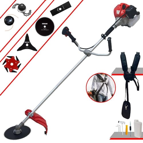 Roçadeira Lateral ANMAX CG430P À Gasolina 2 Tempos 43cc 2HP + Faca 3 Pontas 255m + Faca 80 Dentes 255mm + Trimmer + Faca 6 Pontas 250mm
