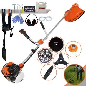 Roçadeira Lateral Terra GR520XP À Gasolina 2 Tempos 52cc 2,5HP Com Lâmina 40 Dentes + Faca 2 Pontas 330mm 2,7mm + Faca 3 Pontas 255mm 2,9mm + Faca 80 Dentes 255mm 1,5mm + Óleo Castrol Stihl 500ml