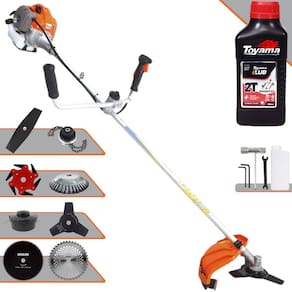 Roçadeira Lateral Vulcan VR430P À Gasolina 2 Tempos 43cc 1,7HP + Faca 2 Pontas 330mm + Faca 40 Dentes 255mm + Faca 80 Dentes 255mm + Faca 6 Pontas 250mm + Trimmer + Escova Rotativa 200mm 38 Cerdas + Óleo Toyama FG50 500ml