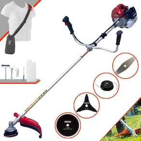 Com guidão ergonômico lateral, permite um alcance amplo e maior mobilidade, capaz de aumentar a produtividade diária. Possui motor 2 tempos á gasolina, de 43 Cilindradas; 1,7HP de potência que proporcionam maior performance e economia na operação. Seu conjunto de acessórios inclui kit de ferramentas, cinto de suporte almofadado, carretel de nylon e lâmina de corte 3 pontas.