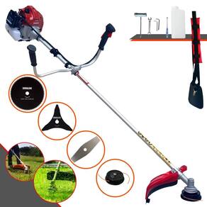 Com guidão ergonômico lateral, permite um alcance amplo e maior mobilidade, capaz de aumentar a produtividade diária. Possui motor 2 tempos á gasolina, de 43 Cilindradas; 1,7HP de potência que proporcionam maior performance e economia na operação. Seu conjunto de acessórios inclui kit de ferramentas, cinto de suporte almofadado, carretel de nylon e lâmina de corte 3 pontas.