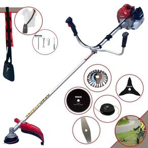 Com guidão ergonômico lateral, permite um alcance amplo e maior mobilidade, capaz de aumentar a produtividade diária. Possui motor 2 tempos á gasolina, de 52 Cilindradas; 2,5HP de potência que proporcionam maior performance e economia na operação. Seu conjunto de acessórios inclui kit de ferramentas, cinto de suporte almofadado, carretel de nylon e lâmina de corte 3 pontas.