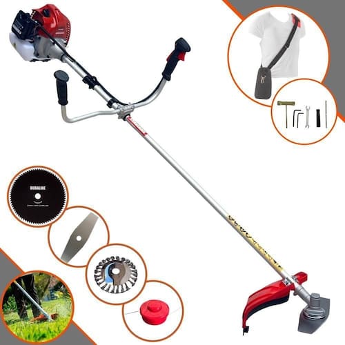 Com guidão ergonômico lateral, permite um alcance amplo e maior mobilidade, capaz de aumentar a produtividade diária. Possui motor 2 tempos á gasolina, de 62 Cilindradas; 3HP de potência que proporcionam maior performance e economia na operação. Seu conjunto de acessórios inclui kit de ferramentas, cinto de suporte almofadado, carretel de nylon e lâmina de corte 3 pontas.