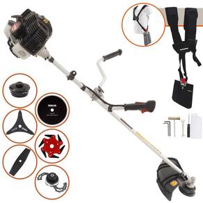 Roçadeira Multifunções Kawashima KW43LE À Gasolina 43cc 10.000rpm 1,7HP 6 Opções de Corte Com Facas 2 Pontas, 3 Pontas, 6 Pontas, 80 Dentes e Trimmer