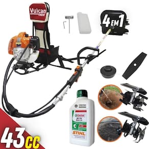 Roçadeira Costal Multifuncional Vulcan VRC430 2T 43CC 1,7HP Com Enxada Capinadeira e Enxada Cultivadora + ÓLEO STIHL 2T