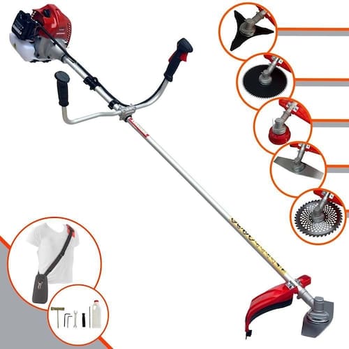 Com guidão ergonômico lateral, permite um alcance amplo e maior mobilidade, capaz de aumentar a produtividade diária. Possui motor 2 tempos á gasolina, de 62 Cilindradas; 3HP de potência que proporcionam maior performance e economia na operação. Seu conjunto de acessórios inclui kit de ferramentas, cinto de suporte almofadado, carretel de nylon e lâmina de corte 3 pontas.