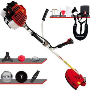 Roçadeira Lateral Kawashima KW43-L À Gasolina 2T 43cc 1,7HP Com Lâmina 3 Pontas + Faca 2 Pontas 330mm + Faca 40 Dentes 255mm + Faca 80 Dentes 255mm + Escova Rotativa 38 Cerdas 200mm