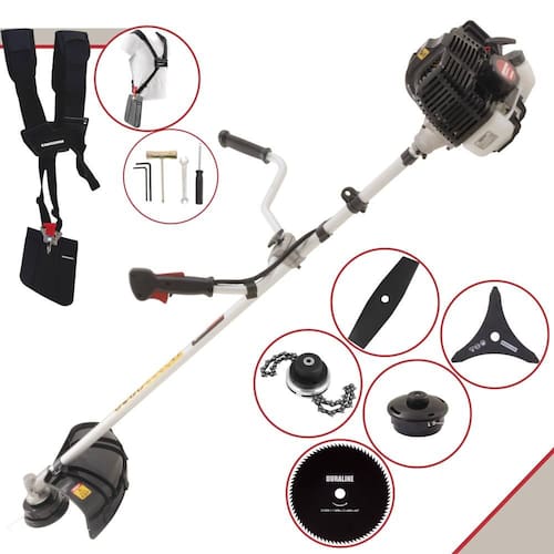Roçadeira Profissional Completa Kawashima KW52LE À Gasolina 52cc 10.000rpm 2,5HP de Potência Com Kit 3 Lâminas de Corte, Trimmer e Carretel de Nylon