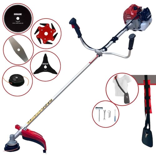 Com guidão ergonômico lateral, permite um alcance amplo e maior mobilidade, capaz de aumentar a produtividade diária. Possui motor 2 tempos á gasolina, de 43 Cilindradas; 1,7HP de potência que proporcionam maior performance e economia na operação. Seu conjunto de acessórios inclui kit de ferramentas, cinto de suporte almofadado, carretel de nylon e lâmina de corte 3 pontas.