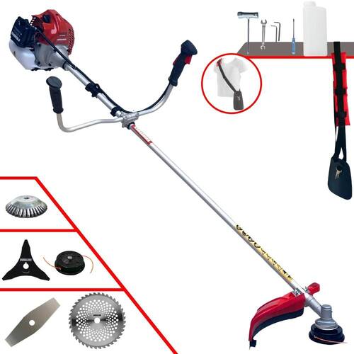 Com guidão ergonômico lateral, permite um alcance amplo e maior mobilidade, capaz de aumentar a produtividade diária. Possui motor 2 tempos á gasolina, de 43 Cilindradas; 1,7HP de potência que proporcionam maior performance e economia na operação. Seu conjunto de acessórios inclui kit de ferramentas, cinto de suporte almofadado, carretel de nylon e lâmina de corte 3 pontas.