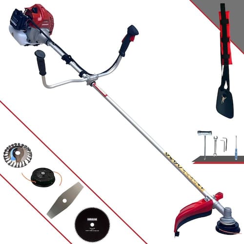 Com guidão ergonômico lateral, permite um alcance amplo e maior mobilidade, capaz de aumentar a produtividade diária. Possui motor 2 tempos á gasolina, de 52 Cilindradas; 2,5HP de potência que proporcionam maior performance e economia na operação. Seu conjunto de acessórios inclui kit de ferramentas, cinto de suporte almofadado, carretel de nylon e lâmina de corte 3 pontas.