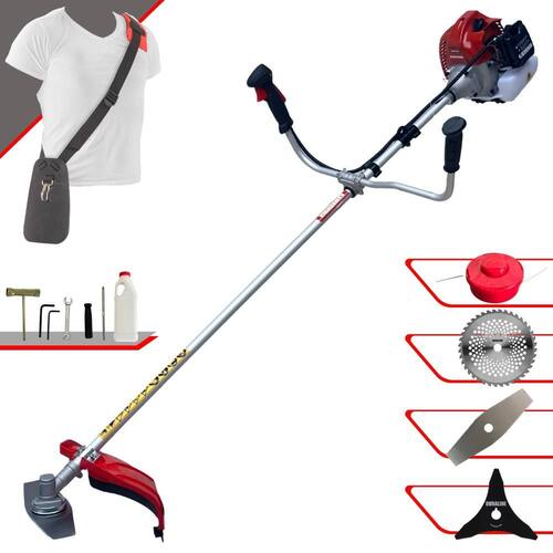 Com guidão ergonômico lateral, permite um alcance amplo e maior mobilidade, capaz de aumentar a produtividade diária. Possui motor 2 tempos á gasolina, de 62 Cilindradas; 3HP de potência que proporcionam maior performance e economia na operação. Seu conjunto de acessórios inclui kit de ferramentas, cinto de suporte almofadado, carretel de nylon e lâmina de corte 3 pontas.