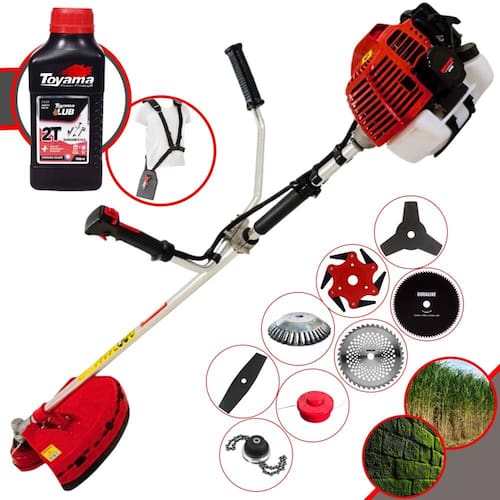 Roçadeira Profissional Kawashima KW43-L À Gasolina 43cc Para Todos os Tipos de Trabalho Com Carretel Nylon + Kit 7 Lâminas de Cortes + ÓLEO TOYAMA